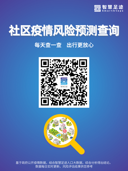 疫情期間,為方便大家科學(xué)安排出行規(guī)劃智慧足跡最新上線“極目大數(shù)據(jù)新冠肺炎疫情風(fēng)險(xiǎn)預(yù)測(cè)”查詢工具支持全國(guó)各城市社區(qū)級(jí)疫情風(fēng)險(xiǎn)查詢您可以掃描或識(shí)別下圖中二維碼及時(shí)了解關(guān)注地區(qū)風(fēng)險(xiǎn)狀況使用指南一、社區(qū)預(yù)測(cè):打開(kāi)應(yīng)用,系統(tǒng)會(huì)定位使用者當(dāng)前位置,自動(dòng)計(jì)算出周邊500米范圍相對(duì)風(fēng)險(xiǎn)較高的前6個(gè)小區(qū),列表中展示與自己相鄰的前50個(gè)小區(qū)的風(fēng)險(xiǎn)級(jí)別。風(fēng)險(xiǎn)級(jí)別分為輕微、偏低、中低、中高、偏高五個(gè)級(jí)別,若風(fēng)險(xiǎn)等級(jí)偏高,