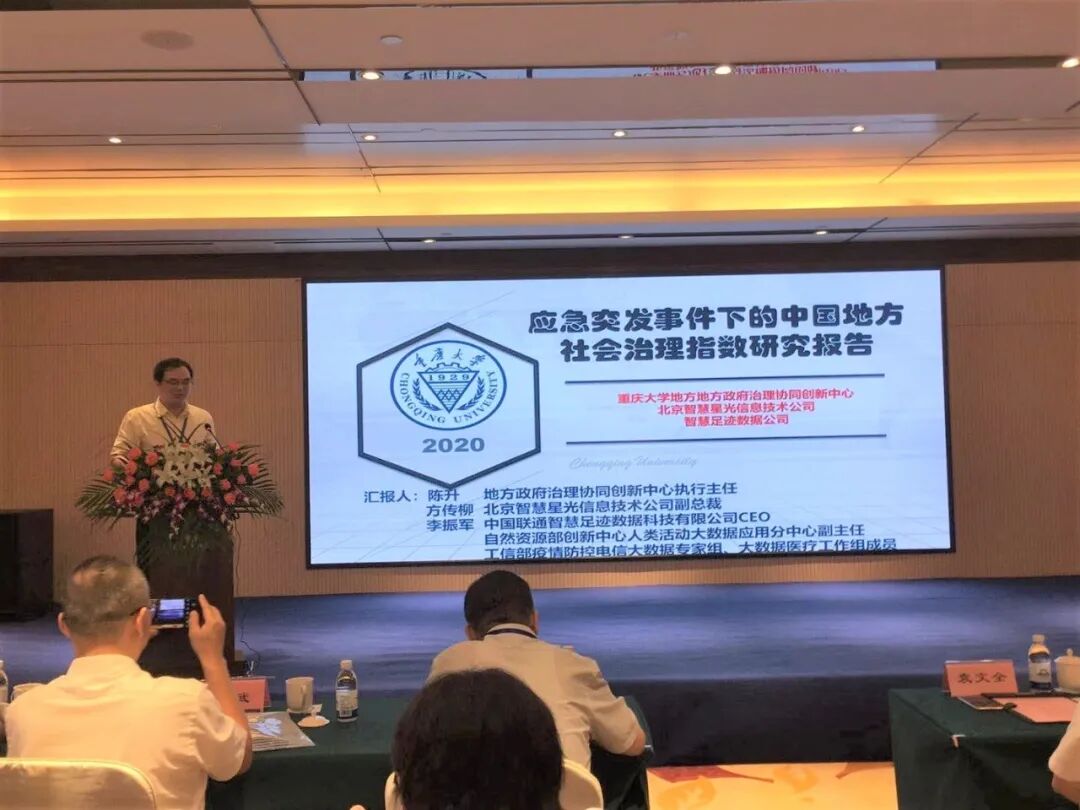 會上,地方政府治理協同創新中心執行主任陳升教授發布了其與智慧足跡數據科技有限公司、北京智慧星光信息技術公司的聯合研究成果報告,報告基于突發公共危機事件背景下(以新冠肺炎疫情為例)的社會治理指標體系,分別從治理基礎能力、主體動員能力、資源配置能力、恢復能力和治理績效五個維度建立指標體系,通過大數據對全國31個省份進行分析研究。
